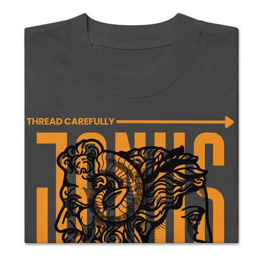 Fire Frog: Embroidered Premium Oversized faded t-shirt