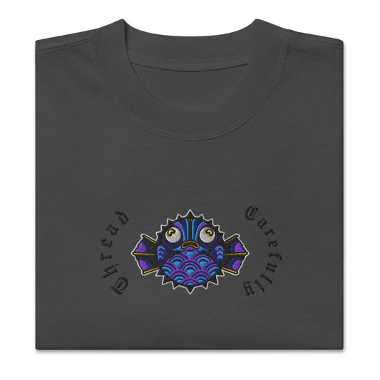 Puffer Fish: Embroidered Premium Oversized faded t-shirt
